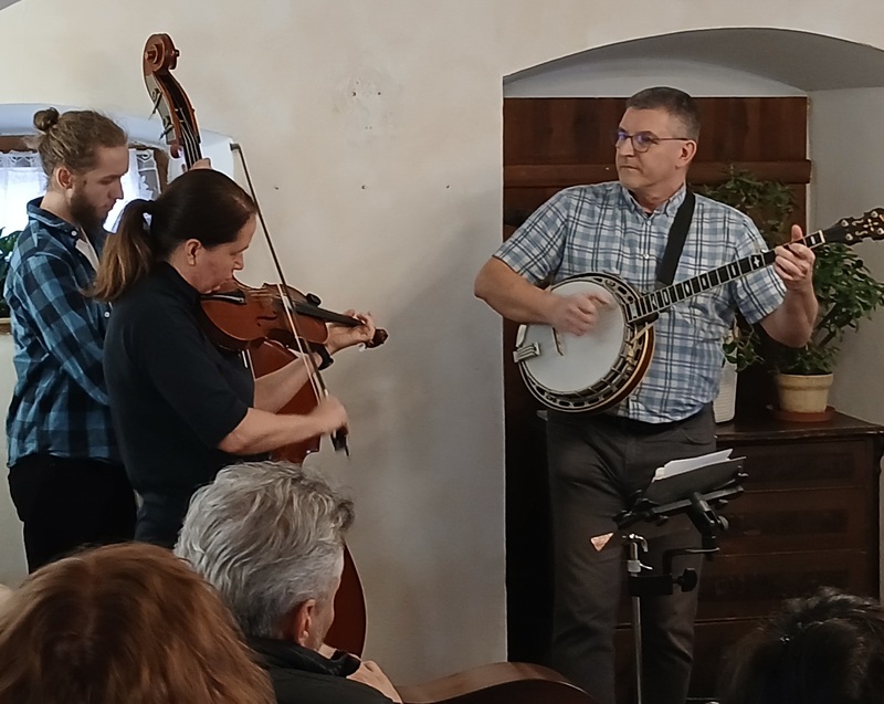 Stránská – mandolína, housle, zpěv, Vojta Bogár –