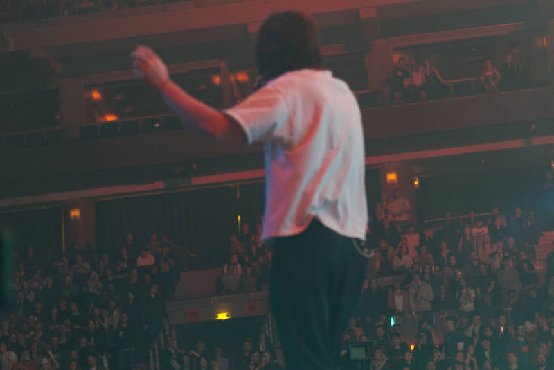 Poměrně zábavný byl Kevinův přesun na B-stage v zadní části haly. Celou dobu ho provázela kamera, a to dokonce i na záchod. V průběhu této drobné pauzy zbytek kapely zůstával na hlavní stage a doprovázel vše hudebním výstupem. Skrz zadní část plochy na stání se Kevin Parker dostal až ke skromné B-stage kruhového tvaru, která působila úplně jako drobná ložnice. Mnoho lampiček, deka a polštář – beaty a blikající lampičky dodaly celému koncertu ještě úplně jinou atmosféru. Seshora navíc vše snímala kamera.